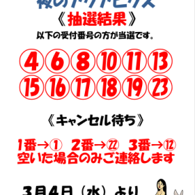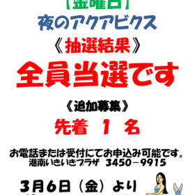 3月夜のアクアビクス金曜日 抽選結果!!